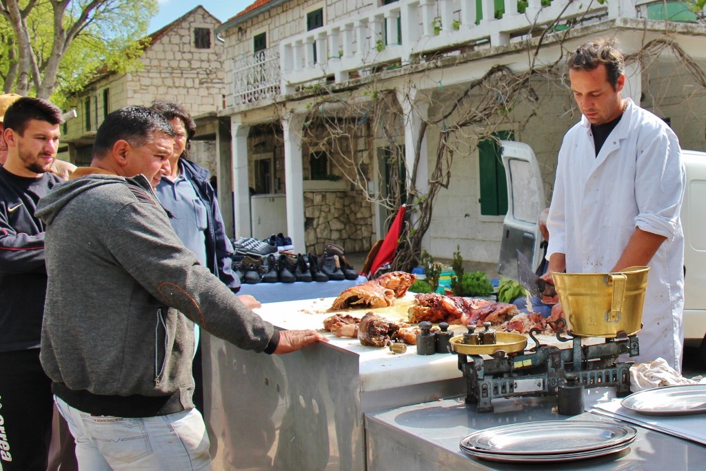 Tables are piled with hardware supplies, antiques are laid out on blankets, lamb is roasted on a spit and, in an open lot, men negotiate prices for cows, pigs, sheep and chickens. (Note: To go to the Zadvarje market, a car is required. Tourist agencies may organize bus tours in the summer. We were fortunate enough to have our Airbnb hosts let us tag along on their trip!)